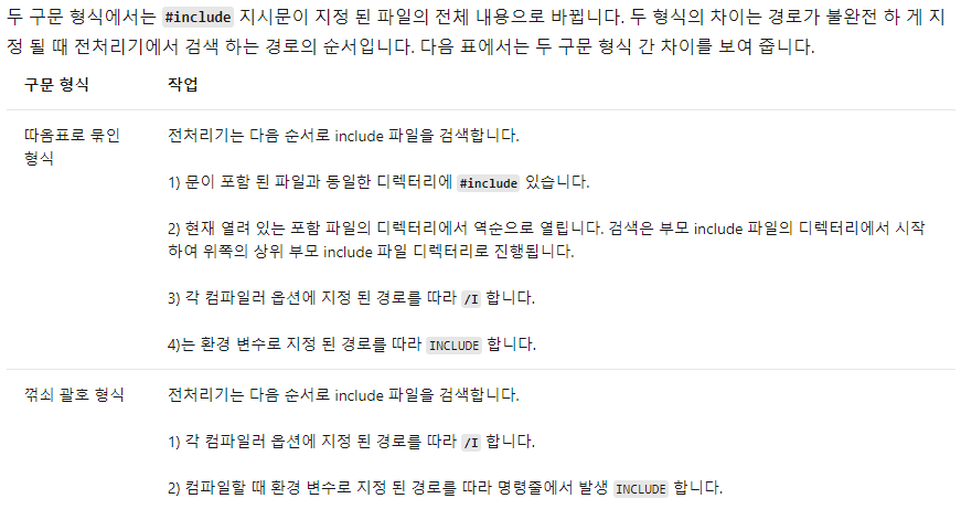 읽어보면 꺾쇠괄호는 컴파일러마다 설정되어있는 경로에서 파일을 찾고